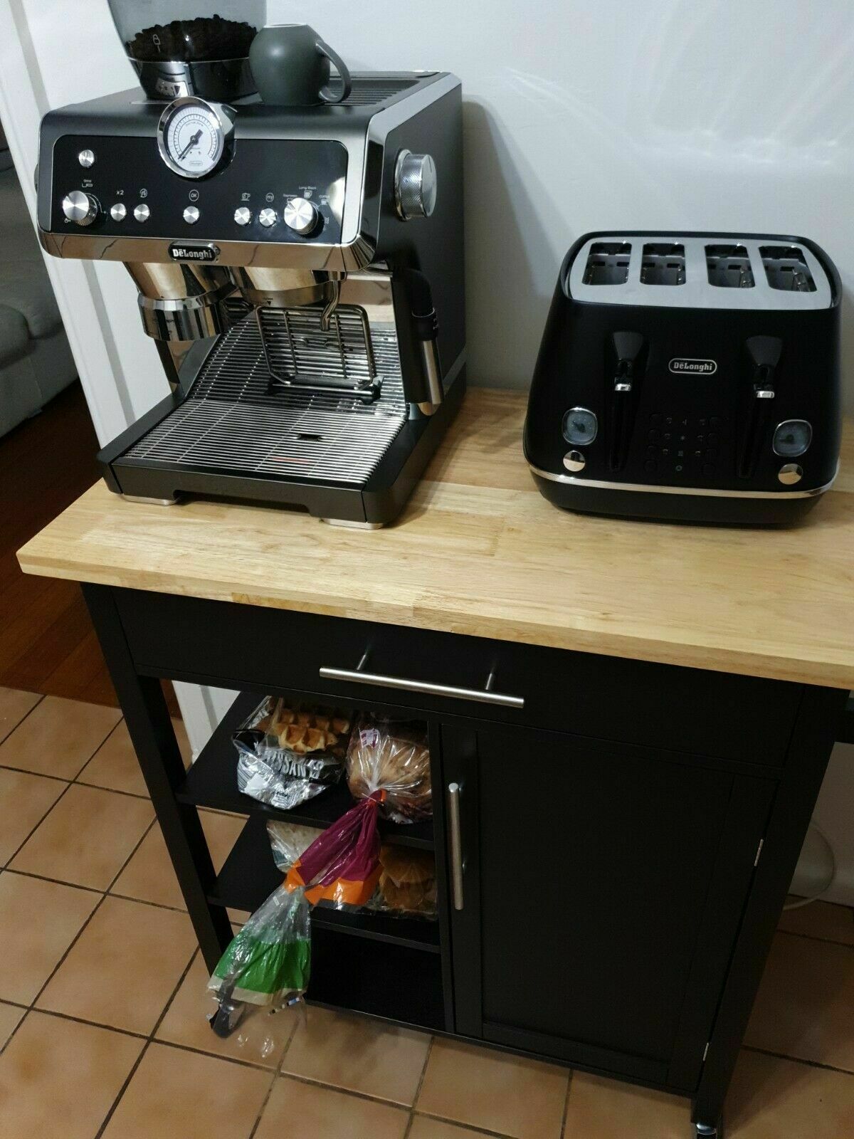 Kitchen Cart Trolley Espresso Cabinet Solid Wood Benchtop